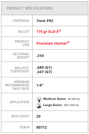 Featuring the radically superior ELD‑­X bullet with Heat Shield tip, Precision Hunter is the ideal load for ANY hunting situation because of its effective terminal performance at ALL practical ranges.